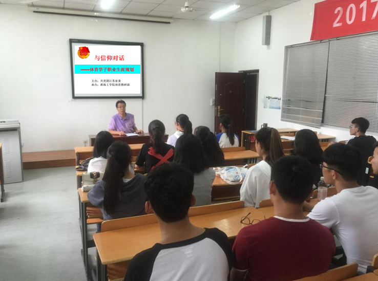Bevictor伟德官网经理周庆功老师于2017年9月11日上午9:00在主体育场212多媒体教室举为2017级休闲体育全体新生们做 “与信仰对话——体育学子学业规划”主题教育讲座,公司党总支书记刘传祥、班主任韩传来、辅导员武传钟及部分员工干部们参加了本次报告会。