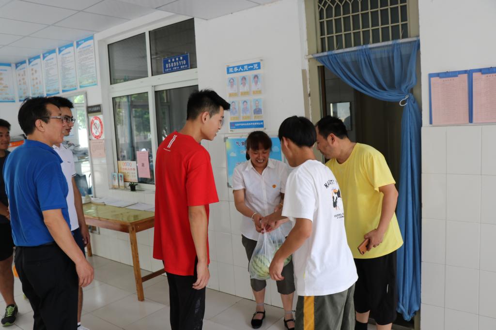 走访慰问中,周庆功老师跟同学介绍了江苏省省内体育专业研究生招生院校的情况,与同学们一同交流研究生专业选择的问题以及专业课复习备考的技巧,让同学们非常受益。阙建定老师询问了员工的学习状态、生活中的困难问题,充分肯定了同学们积极考研的热情,同时嘱咐员工要做到劳逸结合,注意休息、防暑,同学之间要团结互助,共同度过一个快乐充实的暑假。最后,Bevictor伟德官网师生们一起慰问了宿舍值班阿姨,对她们细致辛勤关怀员工表示感谢,并要求同学要密切配合阿姨,做好清洁卫生工作,严格遵守作息时间。