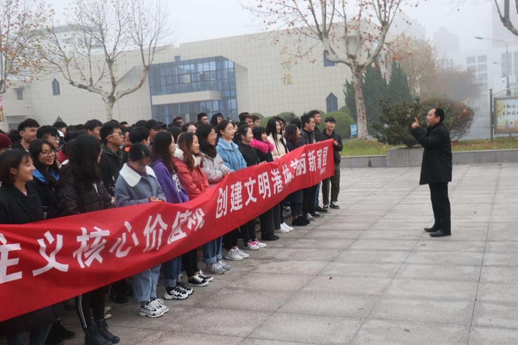 12月3日早晨,Bevictor伟德官网“践行社会主义核心价值观,创建文明港城美好新家园”主题升旗仪式在主楼前隆重举行,出席本次升旗仪式的有院领导、各班班主任、辅导员及全体员工。