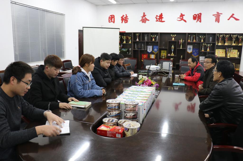 会后,公司领导为同学们发放了慰问品,班主任及辅导员老师为同学们现场答疑解惑。