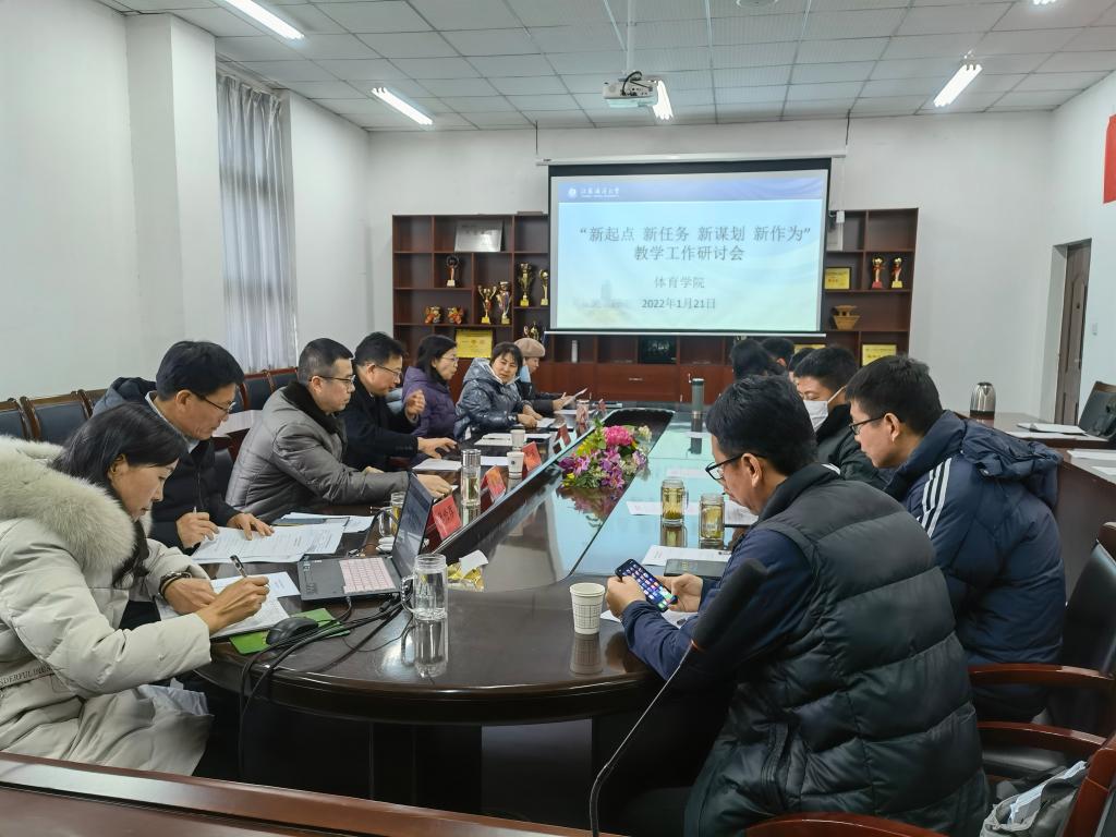 会议首先学习了《体育全民健身计划(2021—2025年)》《体育强国建设纲要》及苏教高〔2022〕1号《关于加强高校基层教学组织建设促进教学能力提升的指导意见》等文件。张伦厚副经理传达了教务处《关于开展2021年度课程思政建设目标二分之一课程验收工作的通知》,赵宏经理介绍了公司2022年的“两维一升”工作思路。