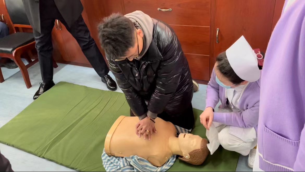 培训现场,医务人员围绕心肺复苏、海姆立克急救法等内容进行讲解示范,通过教具分步演示了如何判断呼吸、打开气道以及开展胸外心脏按压等急救手段,讲解细致入微,操作性强。老师们在"一对一"的专业指导下现场轮流操作,进一步加深和巩固了应急救护知识。之后心血管内科专家汪明琅围绕“冠心病的预防、表现特点及处理手段”等几个方面介绍了冠心病的识别和规范救治。汪医生的讲解深入浅出,娓娓道来。