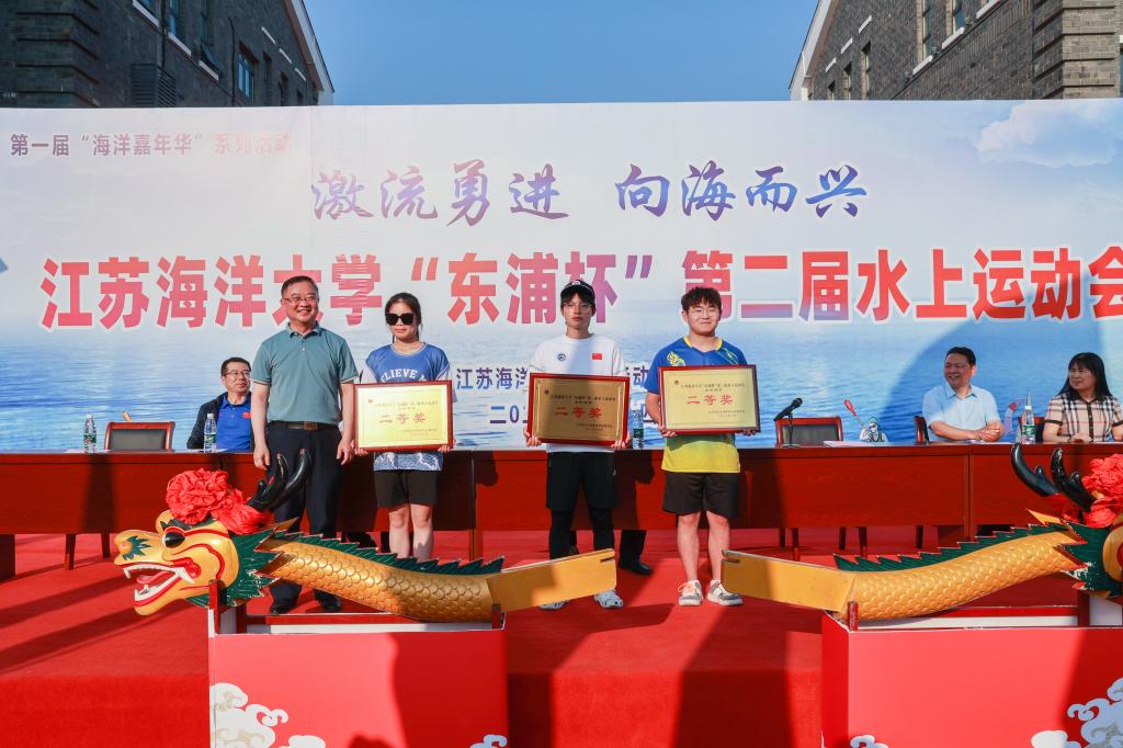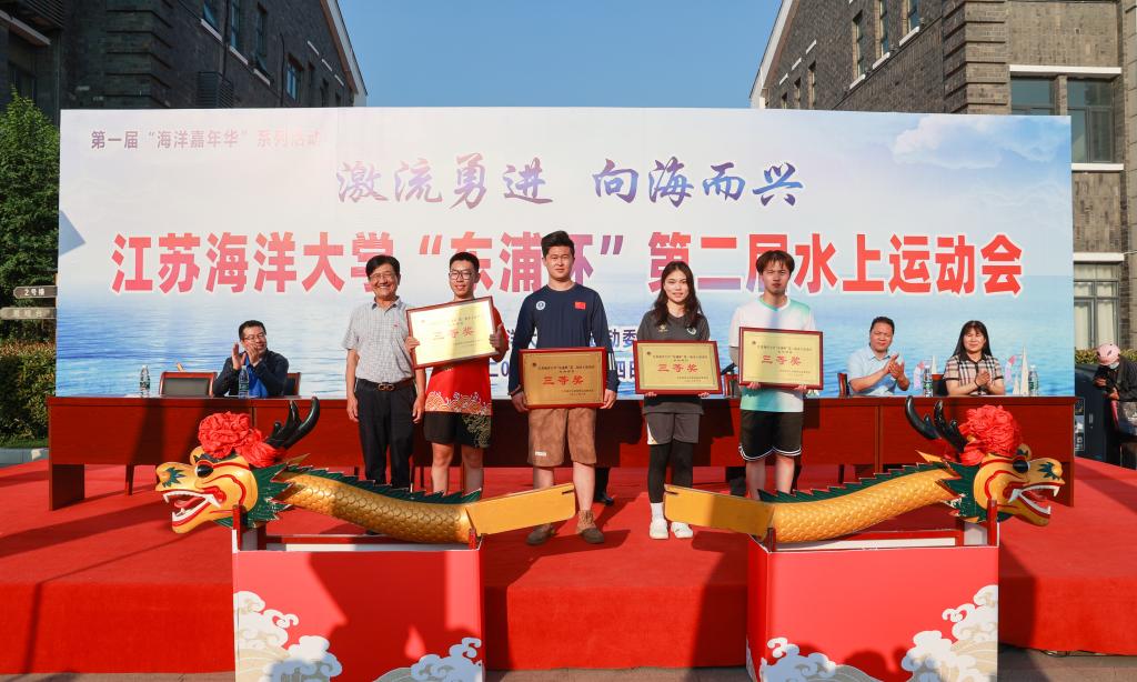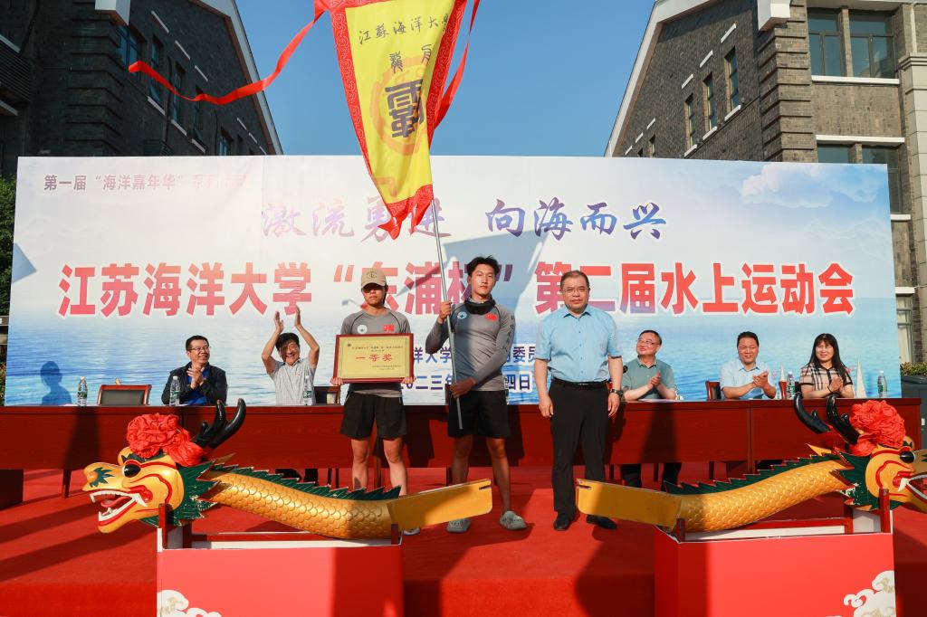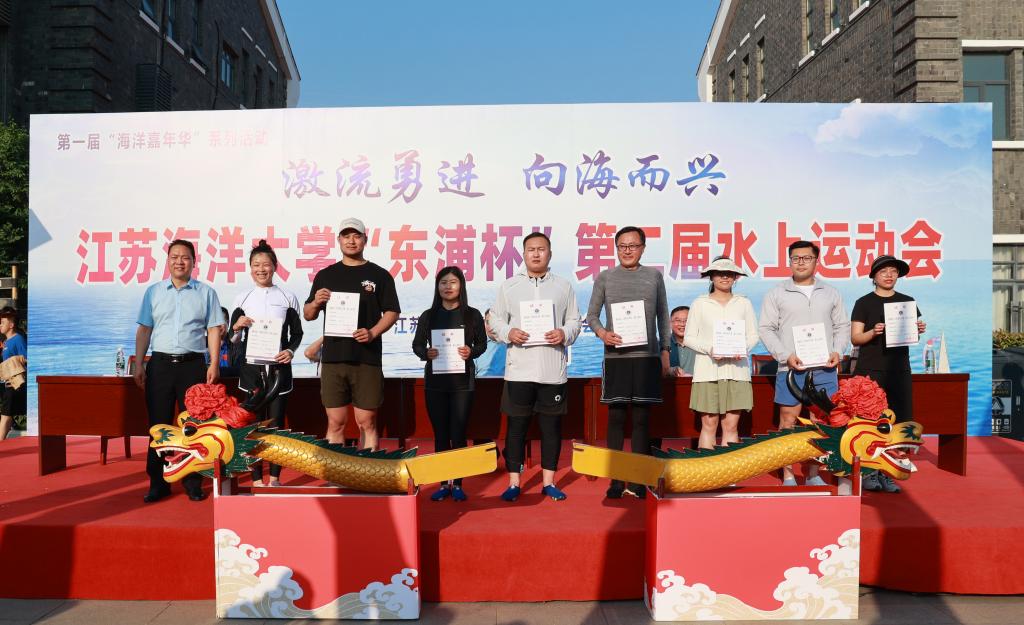 公司党委书记王自力和江苏东浦管桩有限公司党委书记谭学立为龙舟点睛,董事长宁晓明宣布比赛开始。经过激烈角逐,环境与化学工程公司荣获龙舟赛一等奖,应用技术公司、电子工程公司、海洋科学与水产公司荣获二等奖获,土木与港海工程公司、理公司、药公司、文法公司荣获三等奖,其他单位获得优胜奖。应用技术公司的陶垠旭获得员工组皮划艇单人艇第一名;马卡洛夫海洋工程公司的徐艺萌、王孜恒获得员工组皮划艇混合双人艇第一名;应用技术公司的崔晓琳、许华娣获得教工组皮划艇混合双人艇第一名。
