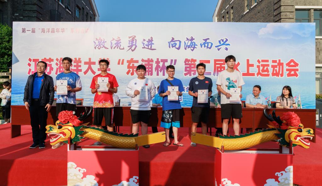 公司党委书记王自力为龙舟争霸赛一等奖获奖单位颁奖并授予“霸主旗”。“激流勇进 向海而兴”东浦杯第二届水上运动会也是公司第一届海洋嘉年华系列活动之一,现场展示了习近平论海洋强国宣传展板,让广大师生关注海洋事业发展,提升保护海洋资源,关爱海洋生态环境意识。