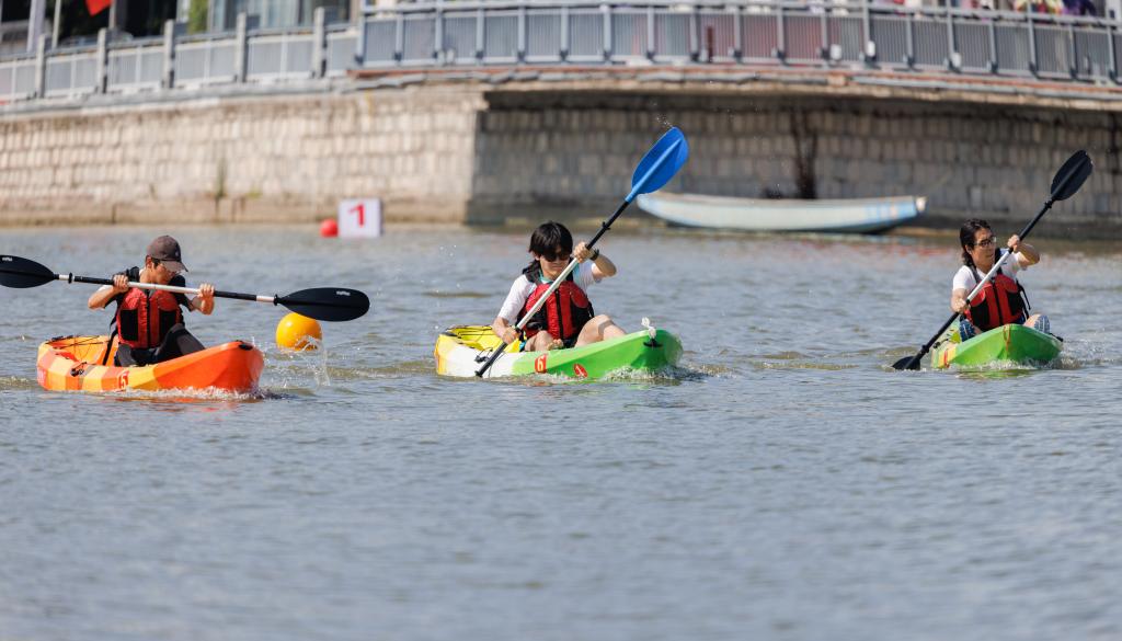 本届水上运动会共有龙舟、单人艇、双人艇三个项目,员工组和教工组两个组别共15支参赛队伍,近300名运动员参加比赛。