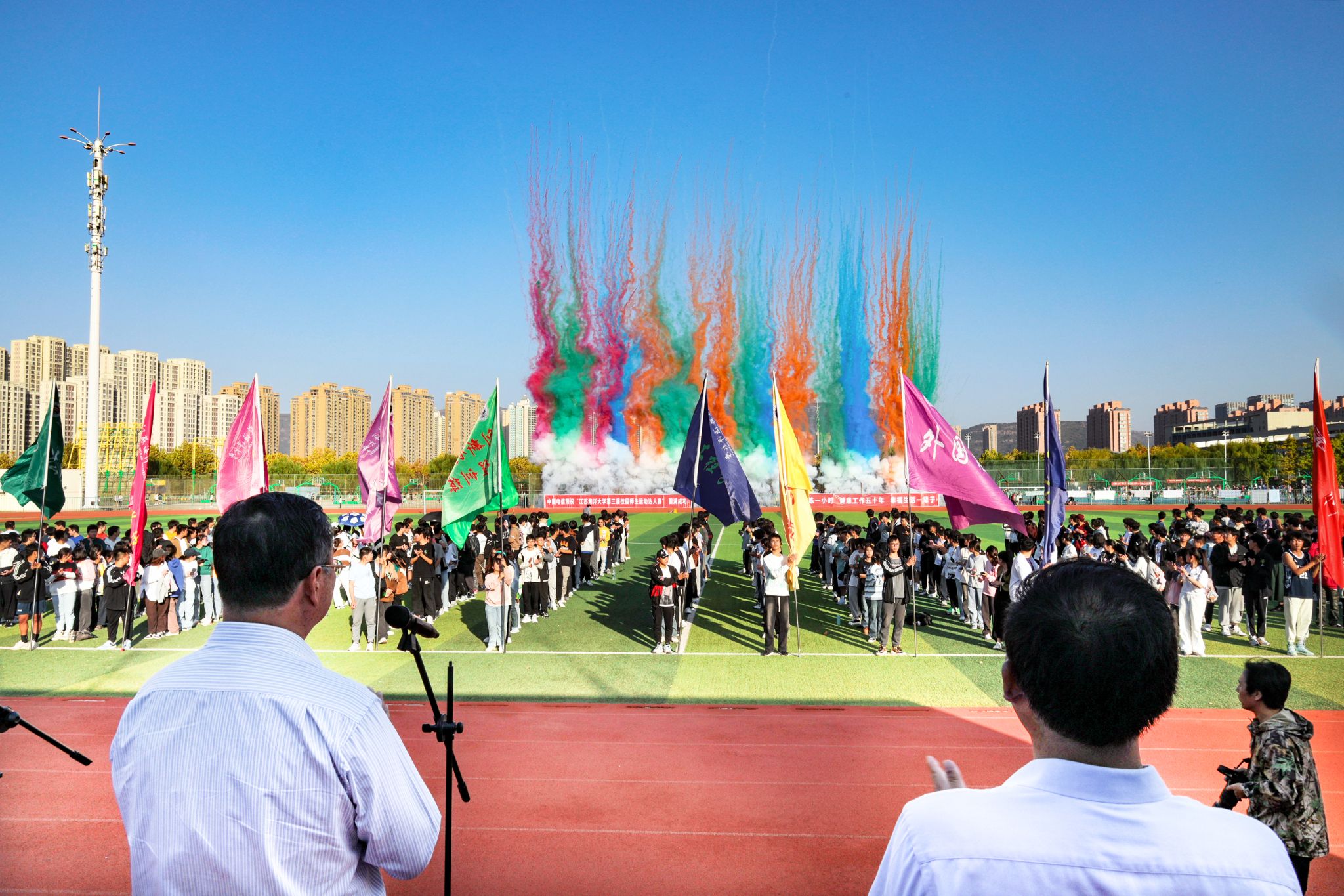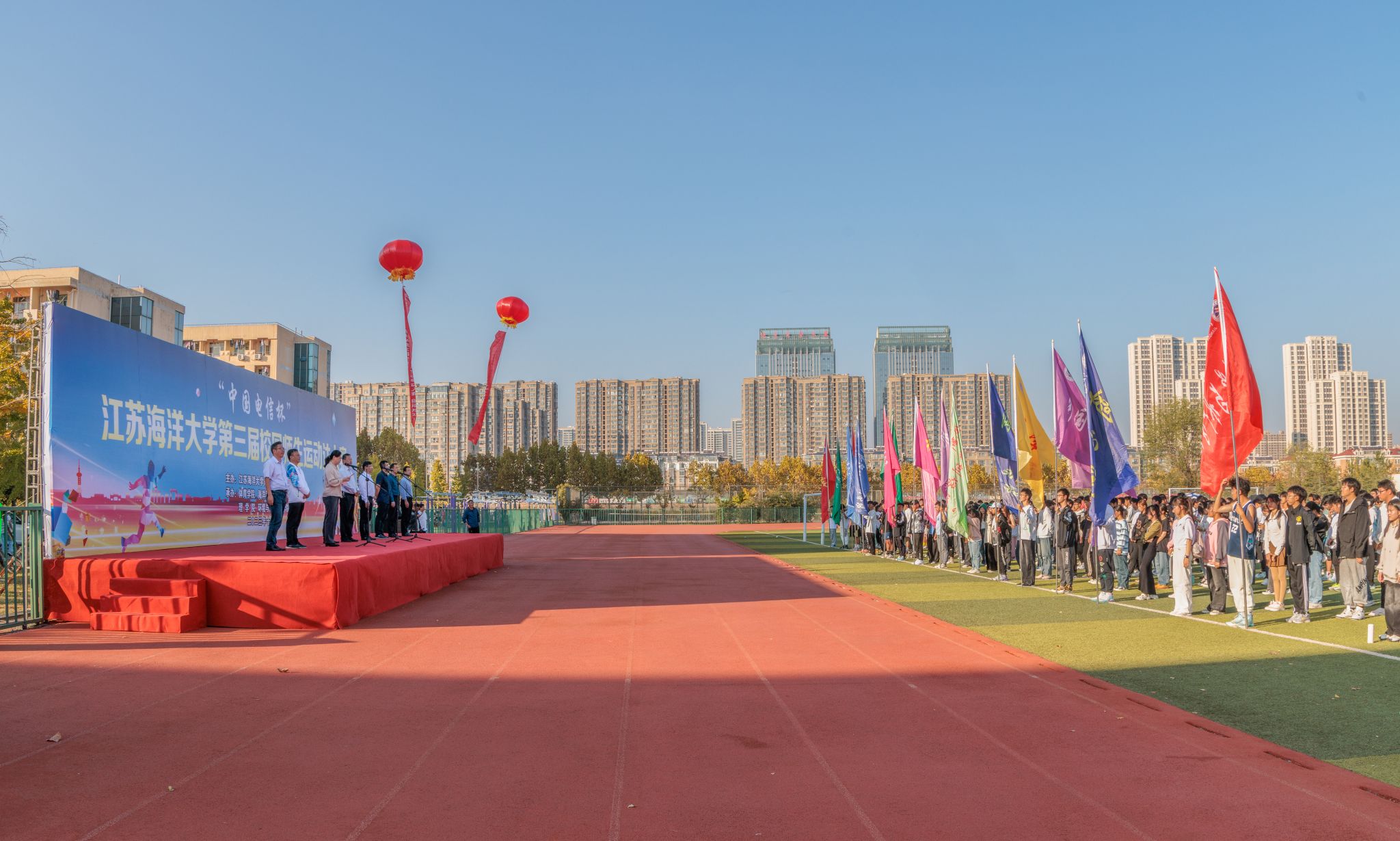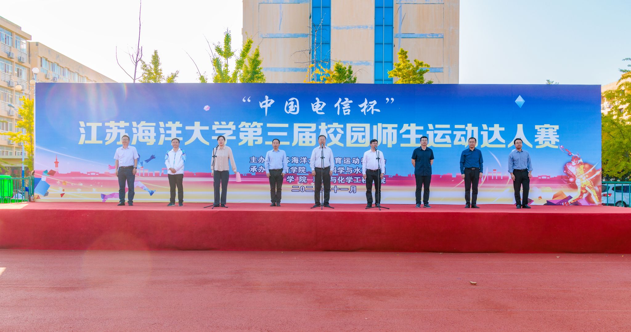11月1日下午,伟德体育“中国电信杯”第三届校园师生运动达人赛在苍梧校区西运动场隆重开幕。董事长宁晓明、副董事长马廷淮出席开幕式,相关公司和职能部门负责人参加开幕式,校运动委员会副主任、工会主席万洁主持开幕式。