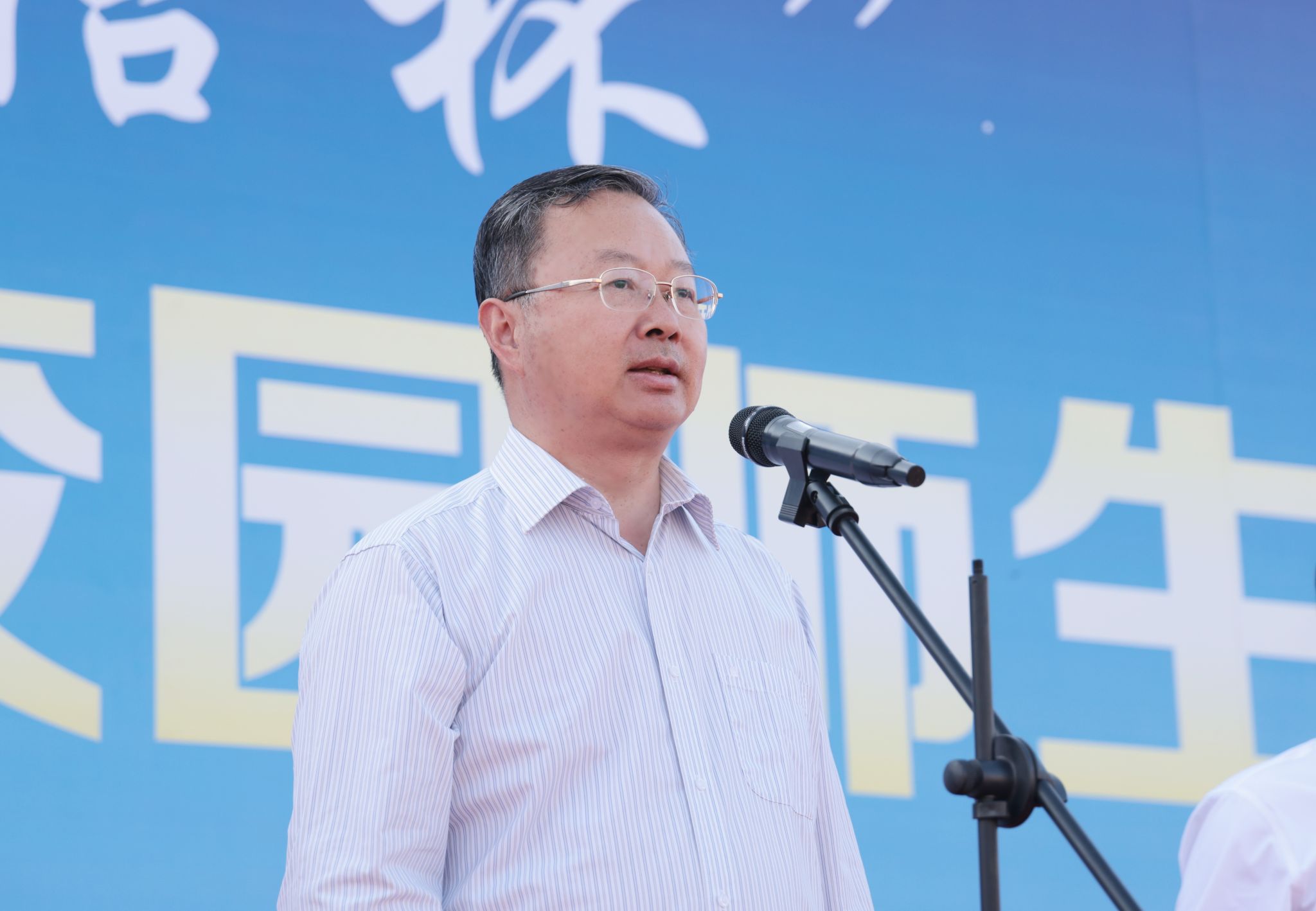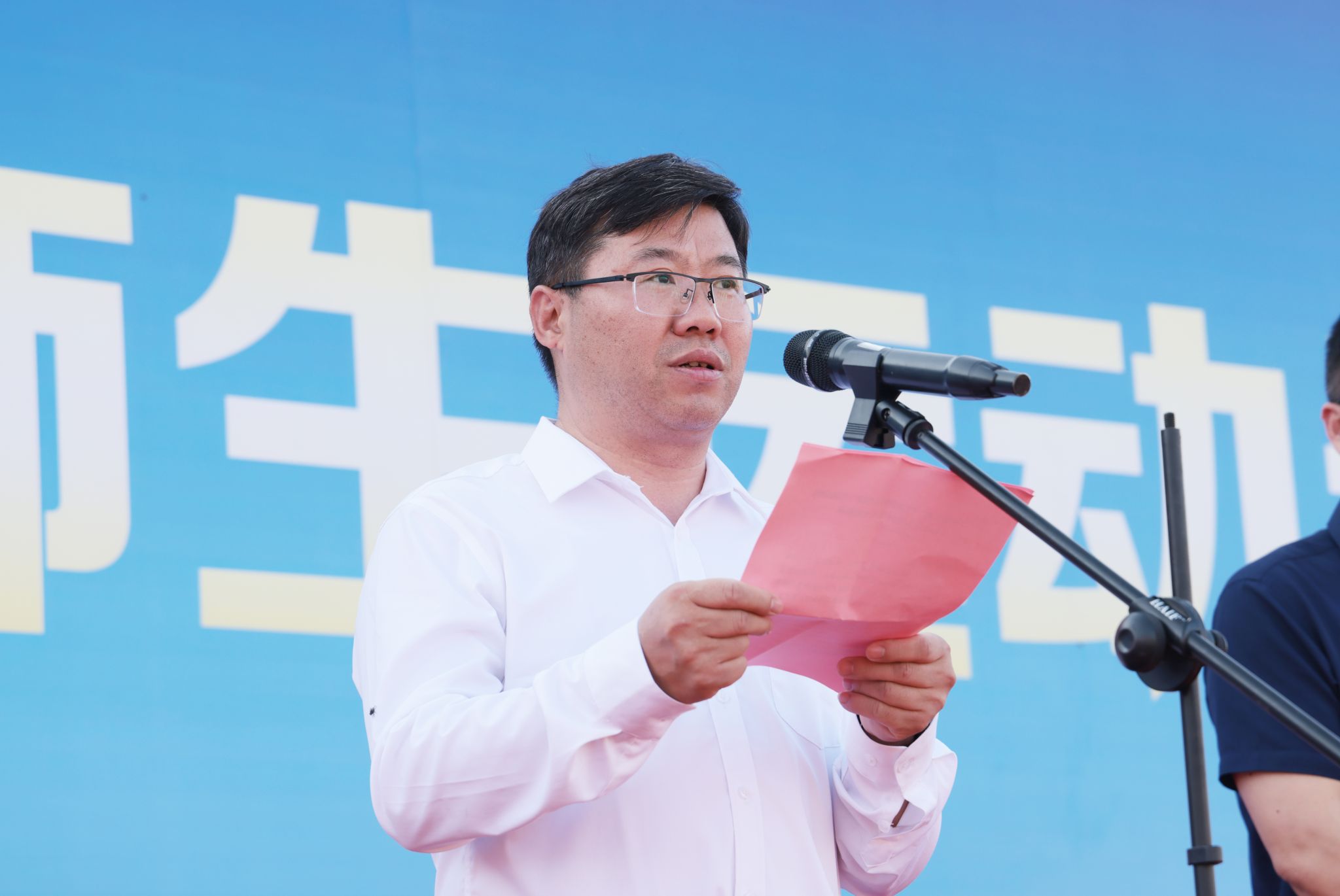 董事长宁晓明宣布大赛正式开幕,全场礼炮齐鸣,彩旗迎风飞舞。