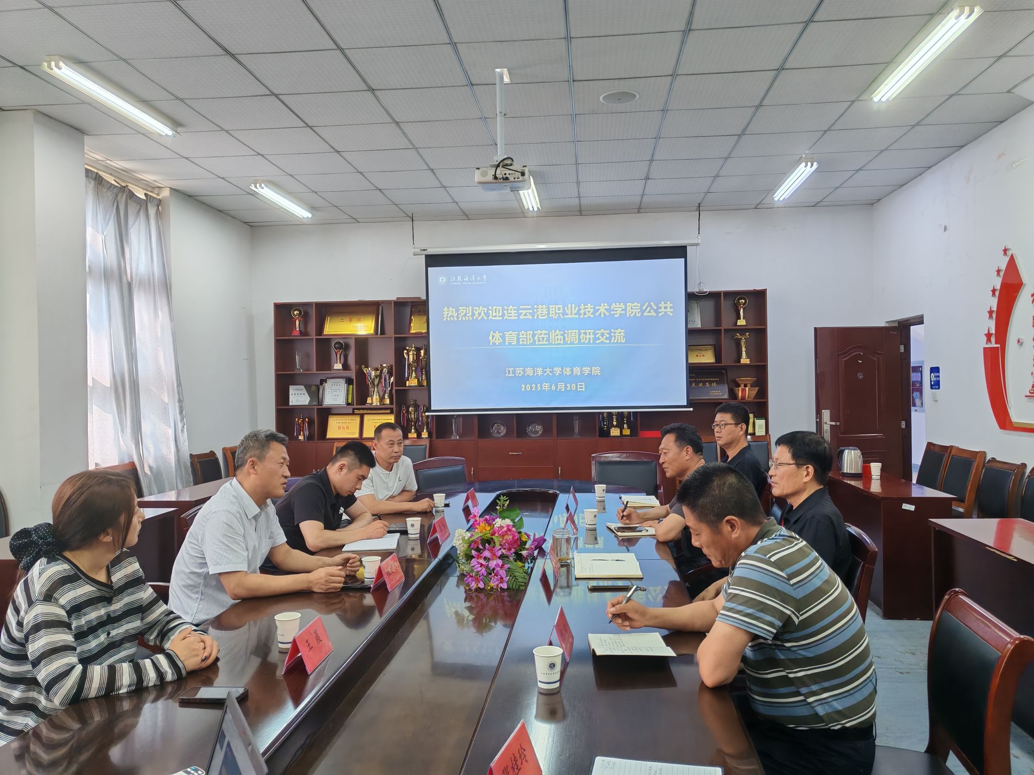 6月30日下午,连云港职业技术公司公共体育部主任张文军一行五人到Bevictor伟德官网进行调研交流。调研会由公司经理张伦厚主持,部分系室主任参加了会议。
