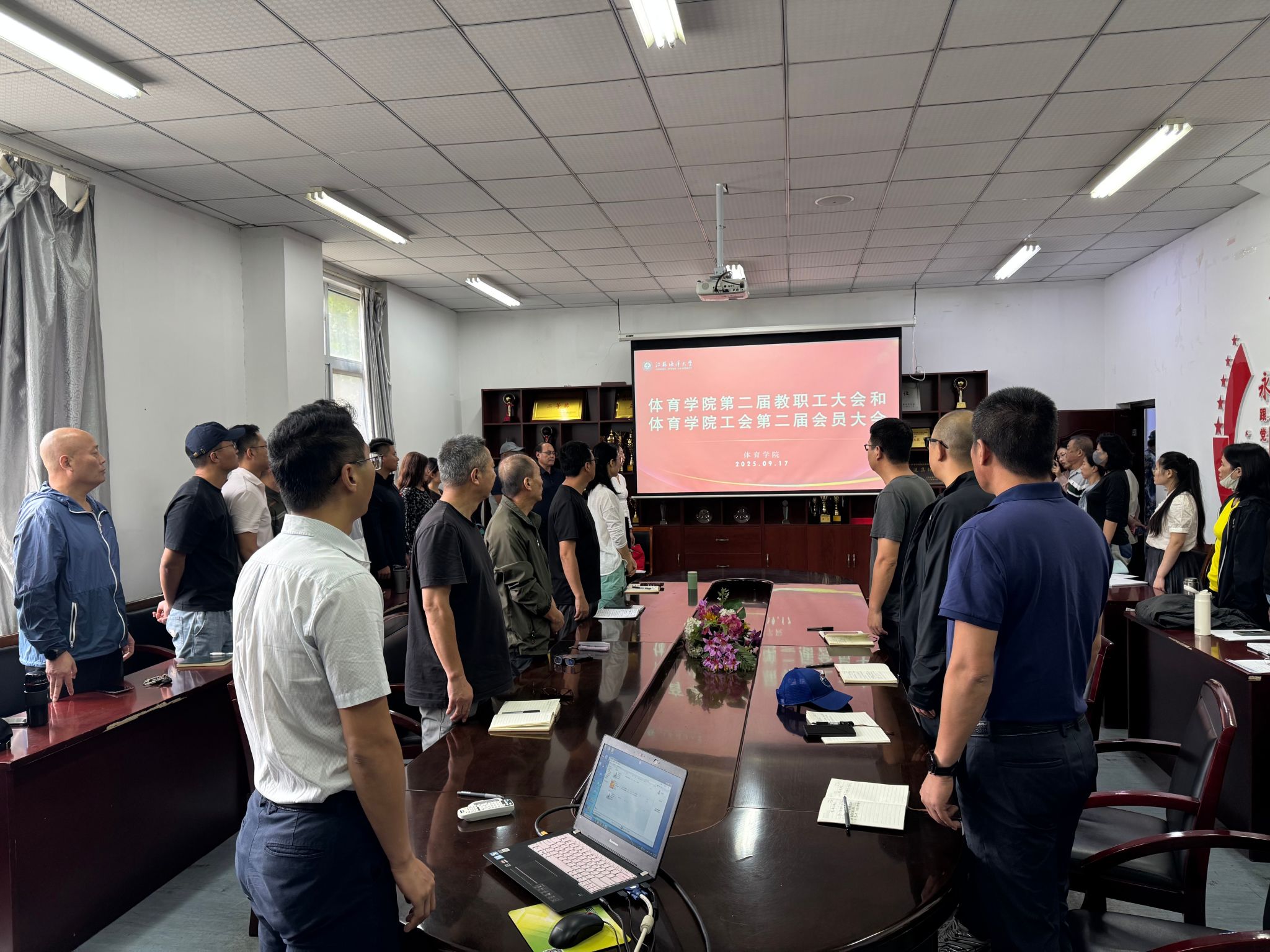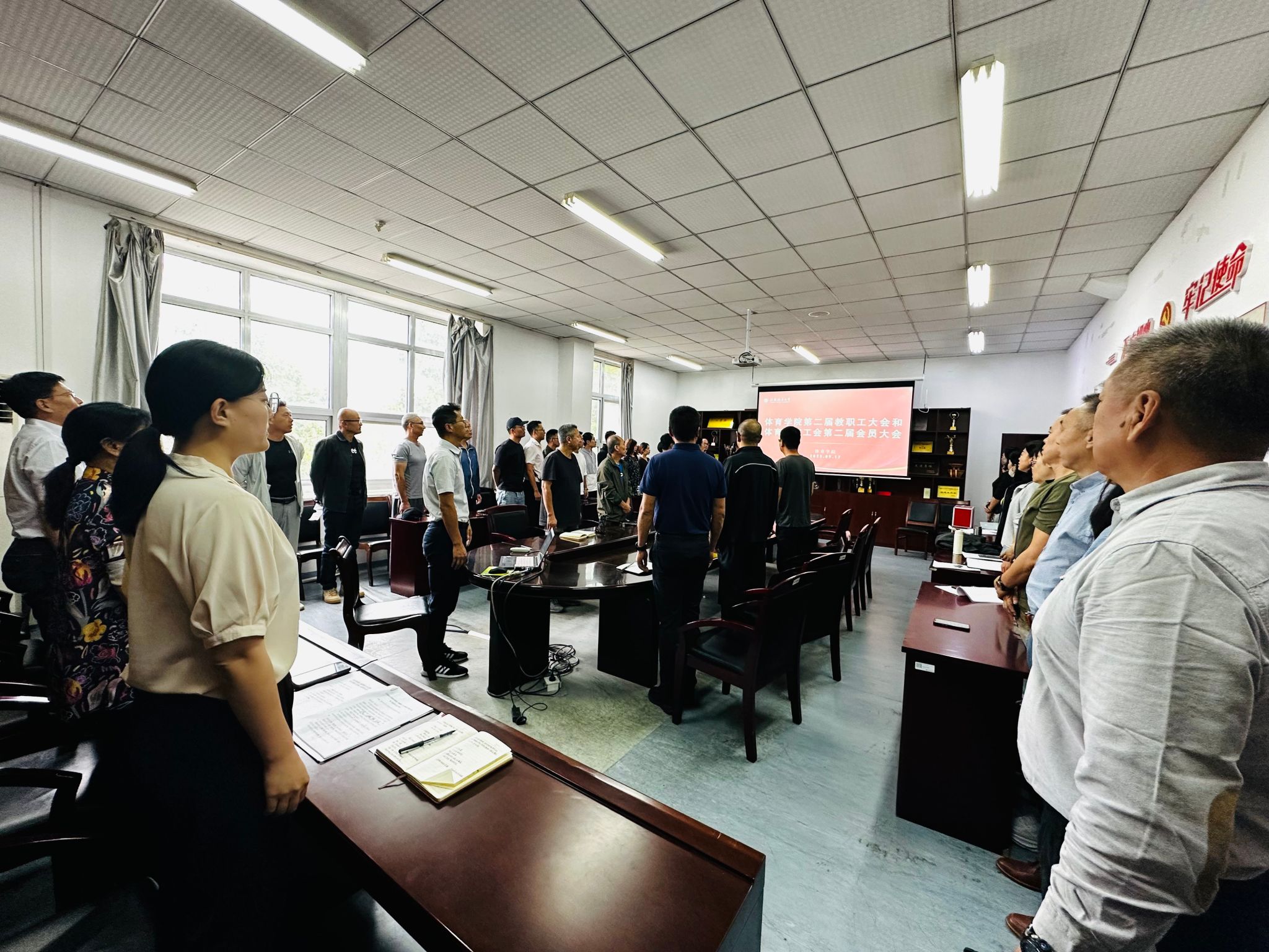 全体参会教职工认真听取审议通过了两个工作报告。