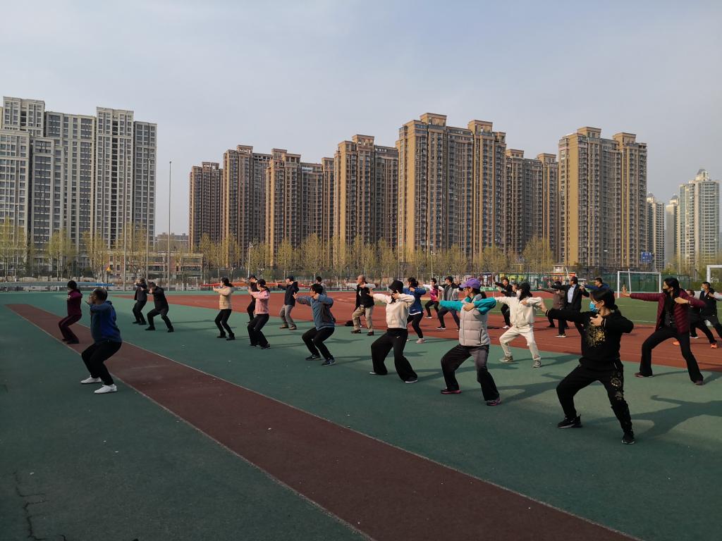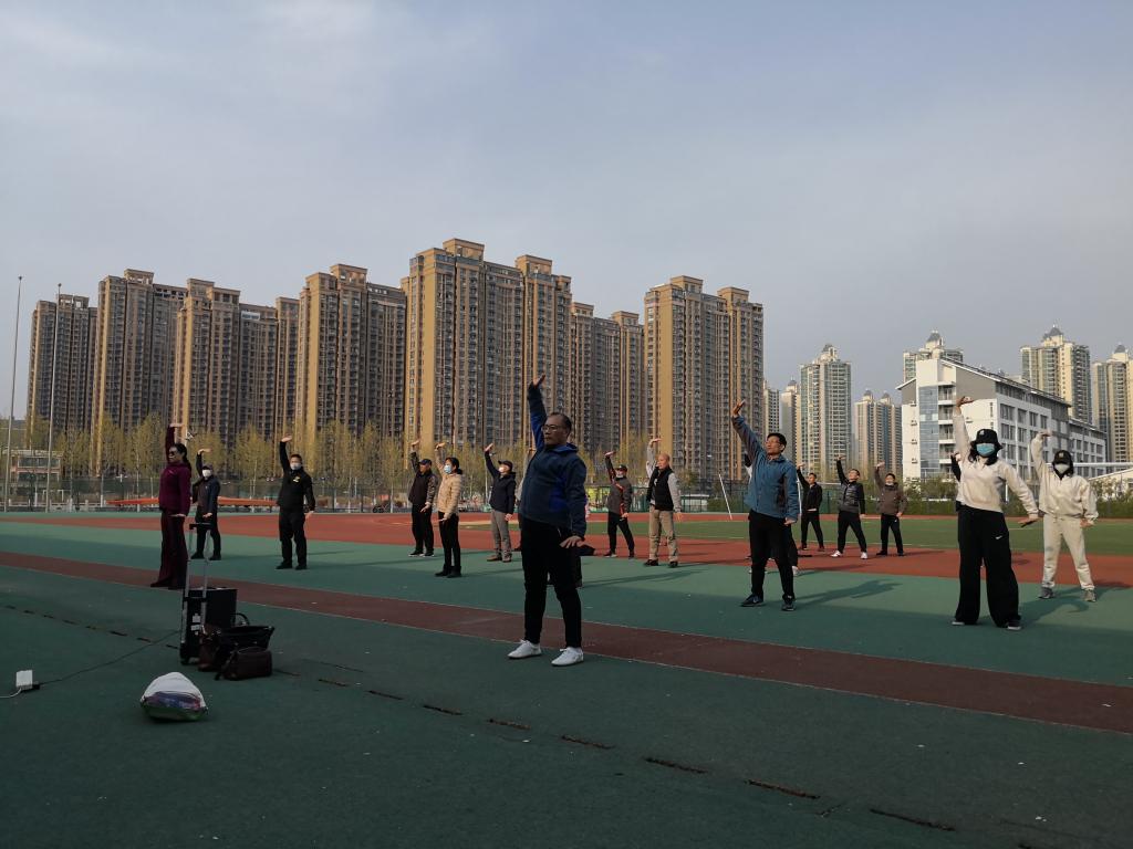 4月8日下午三点,Bevictor伟德官网全体教职工在主运动场进行健身气功·八段锦的集体备课教研活动。