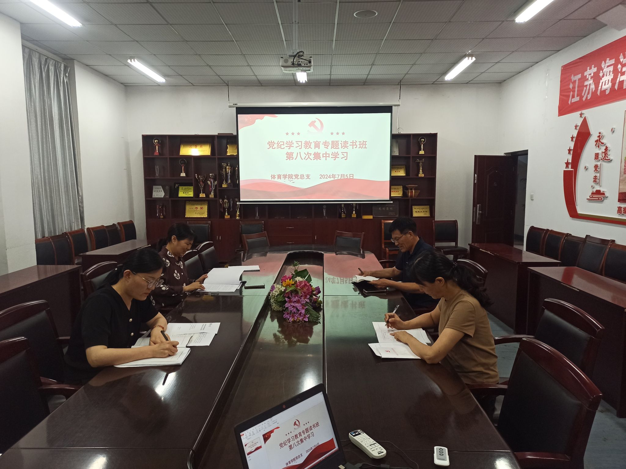 公司党纪学习教育专题读书班第八次集中学习会于7月5日下午在公司会议室召开,党总支书记张萍主持学习会,公司领导班子成员及总支委员参加了学习。