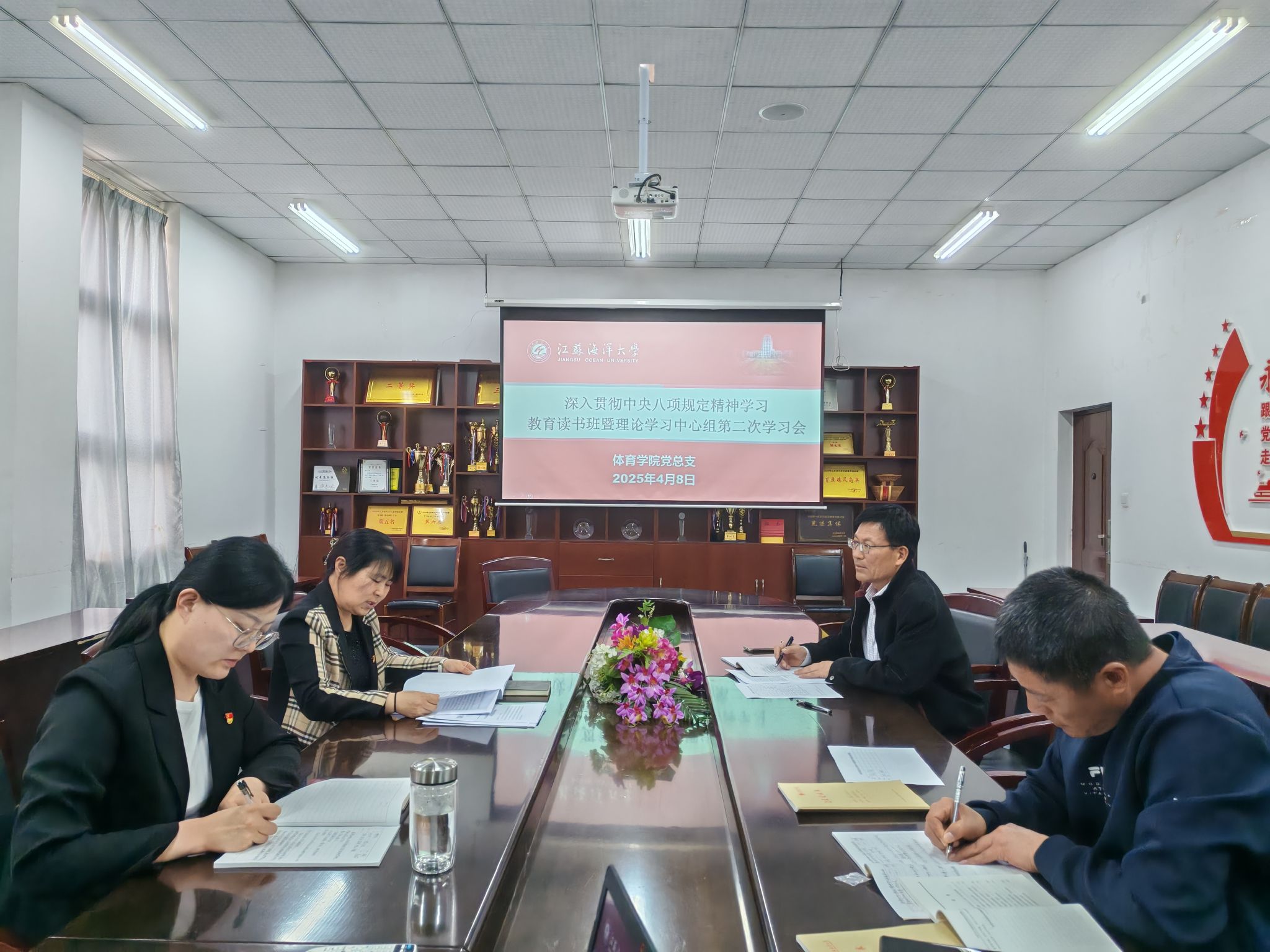 公司党总支理论学习中心组第二次集中学习会于48日下午在公司会议室召开,党总支书记张萍主持学习会,公司领导班子成员及总支委员参加了学习。