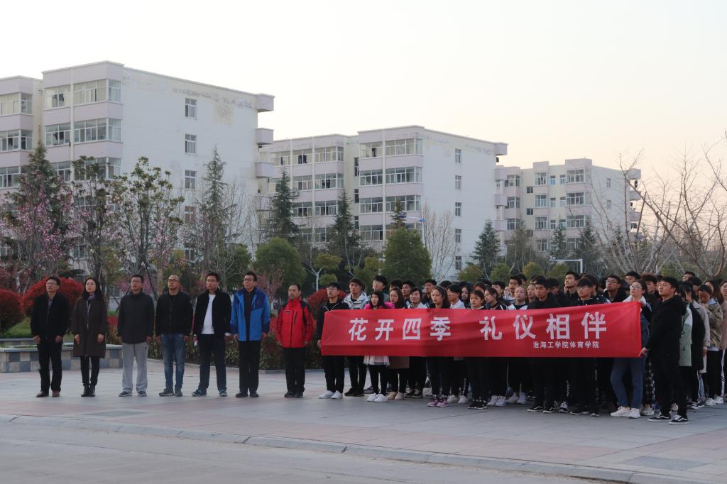 4月1日早晨,Bevictor伟德官网“花开四季,礼仪相伴”主题升旗仪式在淮海工公司西广场举行。公司党政领导、辅导员、2016、2017、2018级班主任及员工参加升旗仪式。