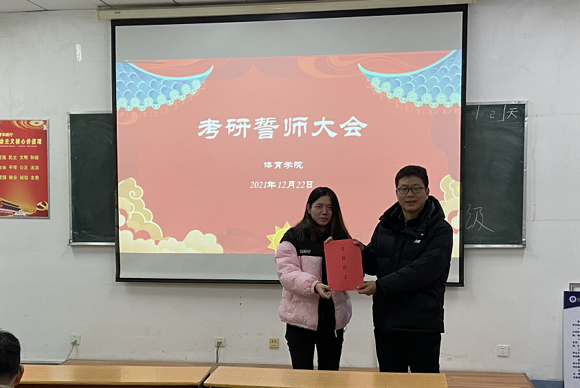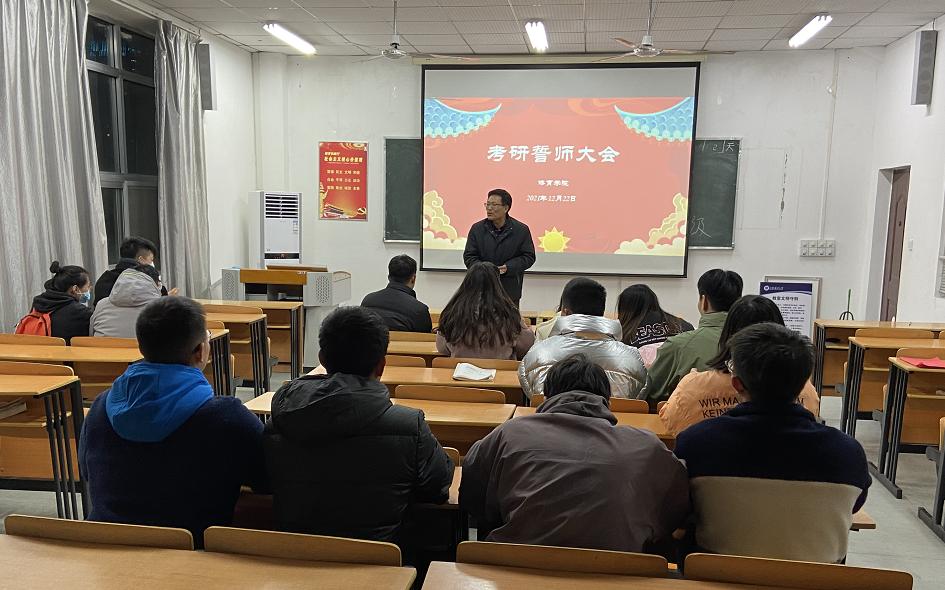 12月22日,体院公司在212教室举行2022届考研员工誓师大会。体育公司副经理张伦厚、辅导员、班主任及全体考研员工参加会议。