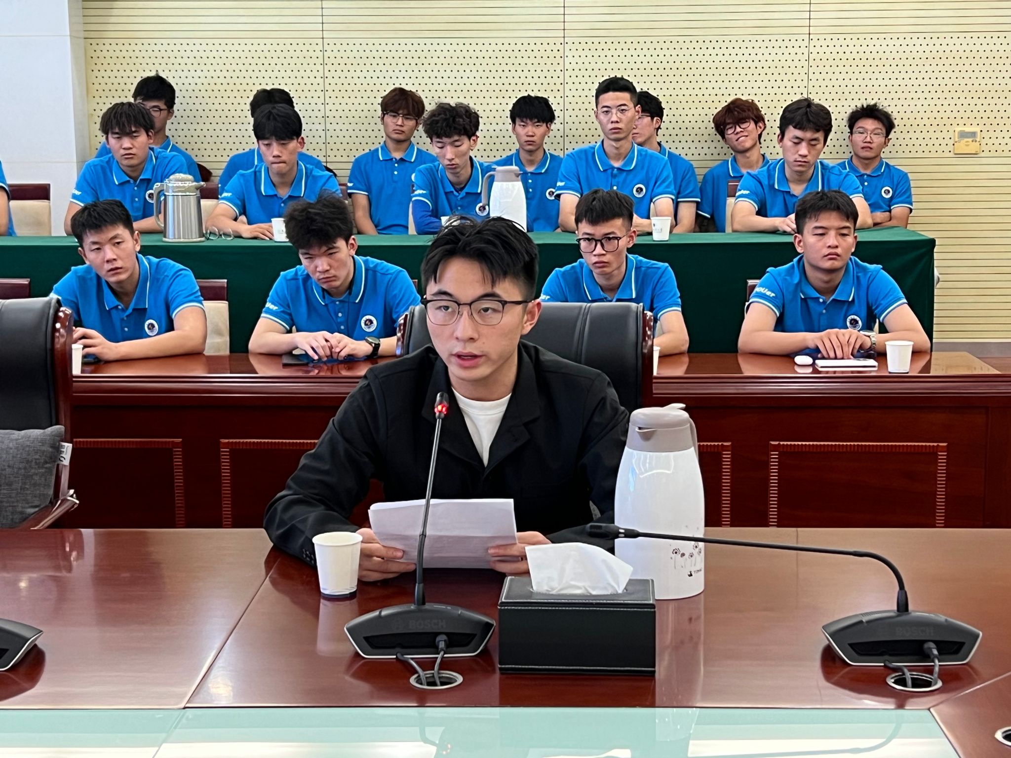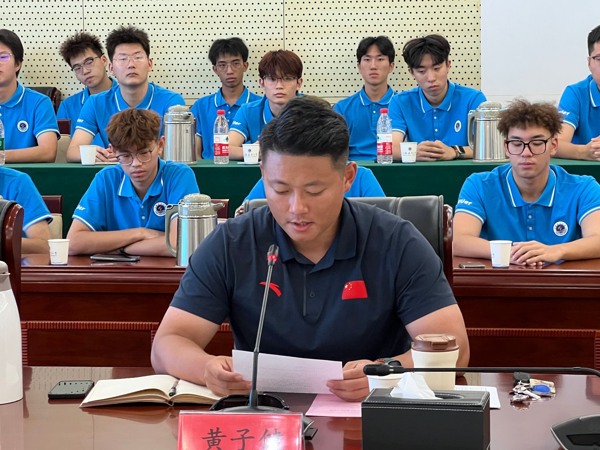休闲1222班班长曾鑫同学作为老生代表发言,他分享了自己在公司两年来的学习体验与收获,建议大家明确努力方向,不断加强专业理论学习和提升运动技能水平,顺利开启海大新生活。休闲1242班郭琳琅同学代表全体新生表达了对老员工活的期待和信心,并希望在未来的日子里大家相互鼓励、相互支持,在体育的道路上勇敢前行,为实现自己的体育梦想而奋斗。