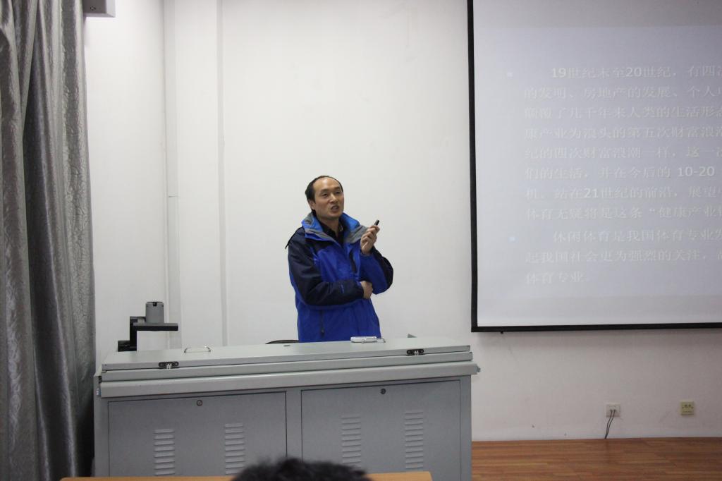2017年3月7日晚上7点,湖南财政经济公司Bevictor伟德官网经理、博士后、教授戴永冠受Bevictor伟德官网的邀请,在Bevictor伟德官网212多媒体教室为休闲体育系员工做体育专题讲座。Bevictor伟德官网经理周庆功、副经理张伦厚出席讲座,休闲体育系主任、各公共体育教研室主任以及全体休闲体育员工参加讲座学习。