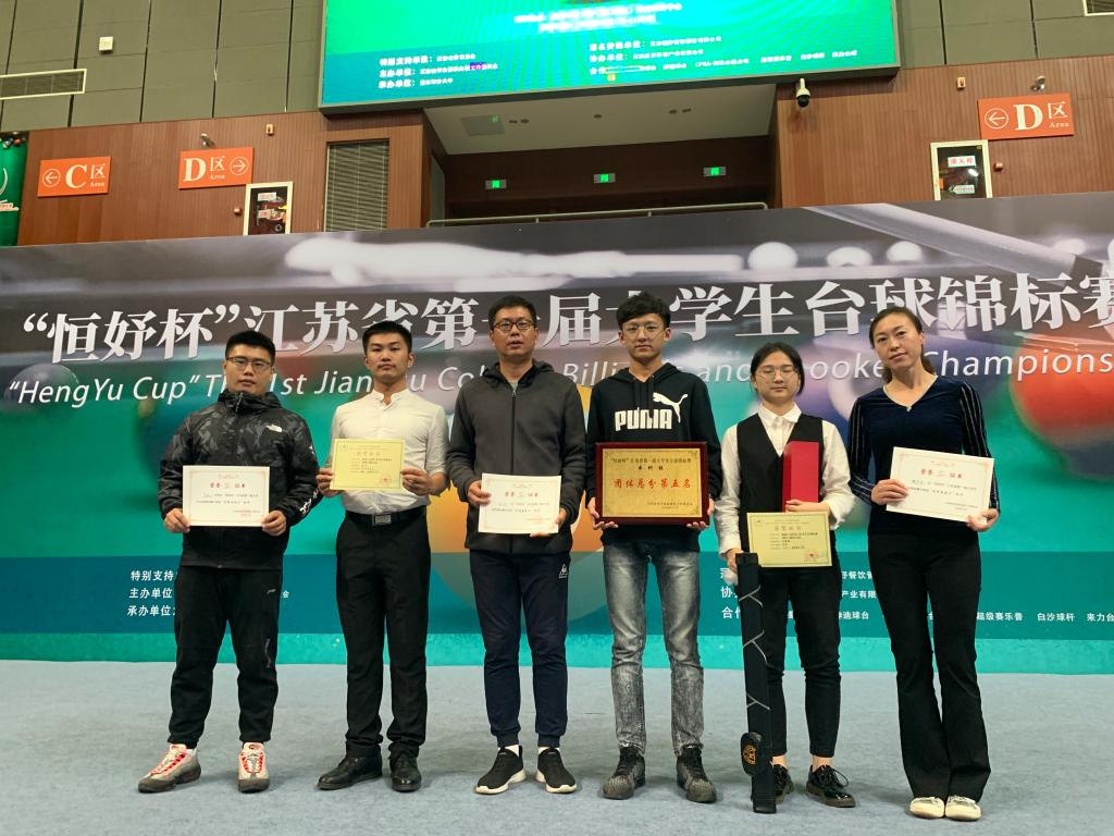 11月1-3日,由江苏省员工体协高校工作委员会主办,南京审计大学承办的“恒妤”杯江苏省首届老员工台球锦标赛在南京审计大学体育馆举行,本次比赛吸引了省内近三十所高校参加。公司派出4名同学参加了中式台球、美式九球和斯诺克的比赛,经过三天的激烈角逐,艺术公司的许祖妍同学斩获女子美式九球亚军,海洋生命与水产公司的张伟同学获得男子美式九球第五名,并夺得团体总分第五名的优异成绩。比赛中队员们敢打敢拼、沉着冷静,向全省高校展现了伟德体育的学子风采。此次比赛,朱江、魏芳艳两位老师获得了“优秀教练员”称号。