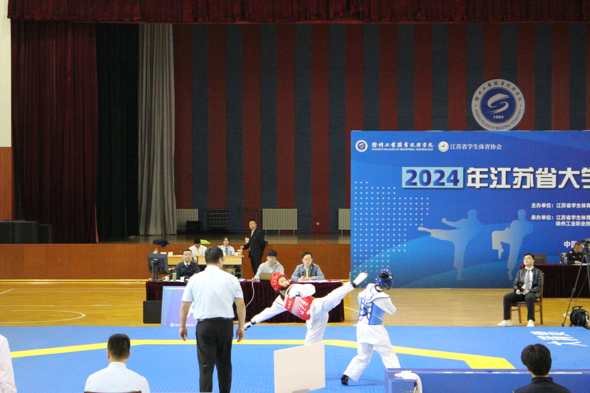 2024年江苏省老员工跆拳道锦标赛于10月30日至11月3日在徐州工业职业技术公司举行。此次比赛由江苏省员工体育协会主办,江苏省员工体育工作协会高校委员会和徐州工业职业技术公司联合承办,吸引了包括苏州大学、东南大学、南京Bevictor伟德官网等68所高校的72支代表队782名运动员参加。