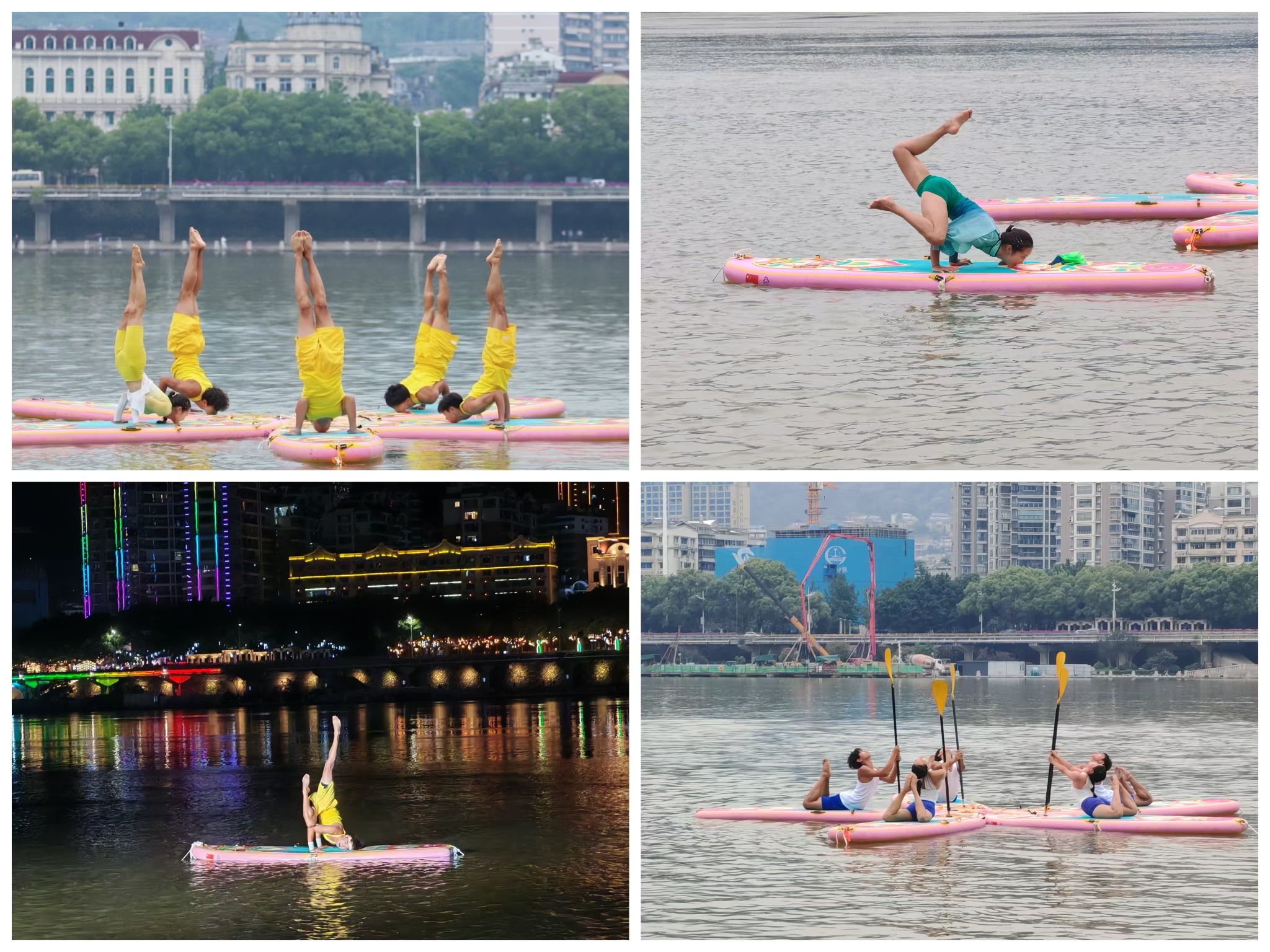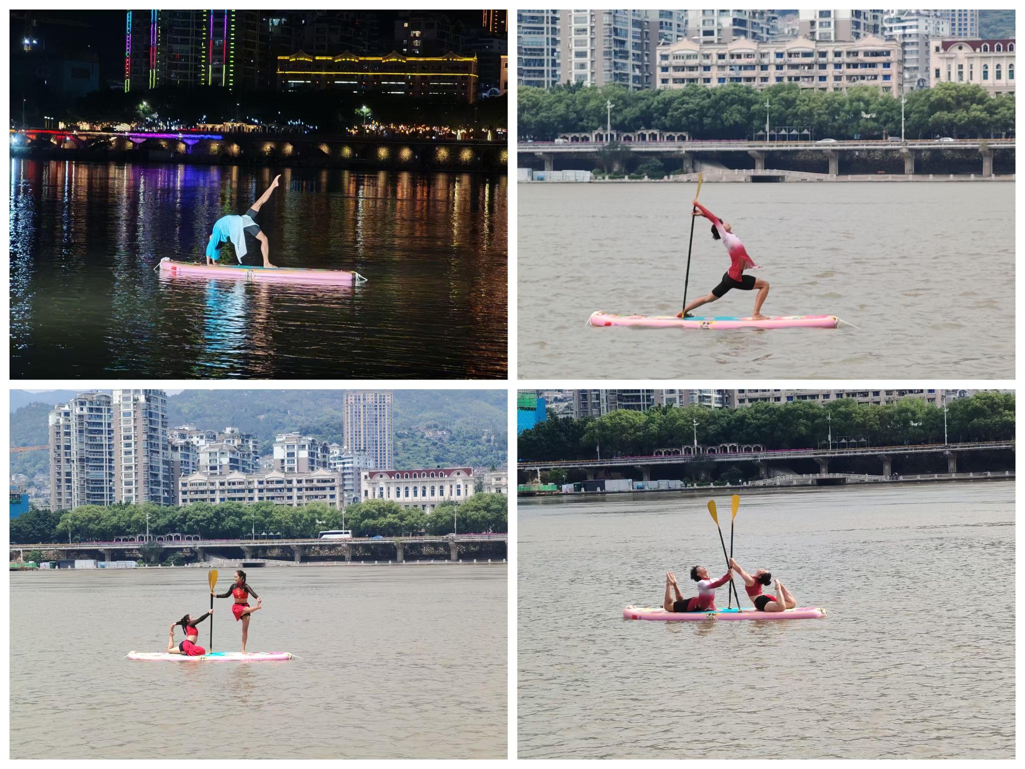 比赛中,公司桨板瑜伽队凭借扎实的技术水平展示及精彩的动作编排,充分展现出了精湛的竞技水平及体育风采。夜晚的太鹤湖云雾缭绕,队员们克服了风雨天气的影响,在桨板上做出倒立、劈叉、起腿等一个个高难度瑜伽动作,尽情展示力与美。最终获得高校组桨板瑜伽团体亚军、混双冠军、男单冠军、女单第三;持桨瑜伽团体第四、混双第三、女双第五、男单第五。